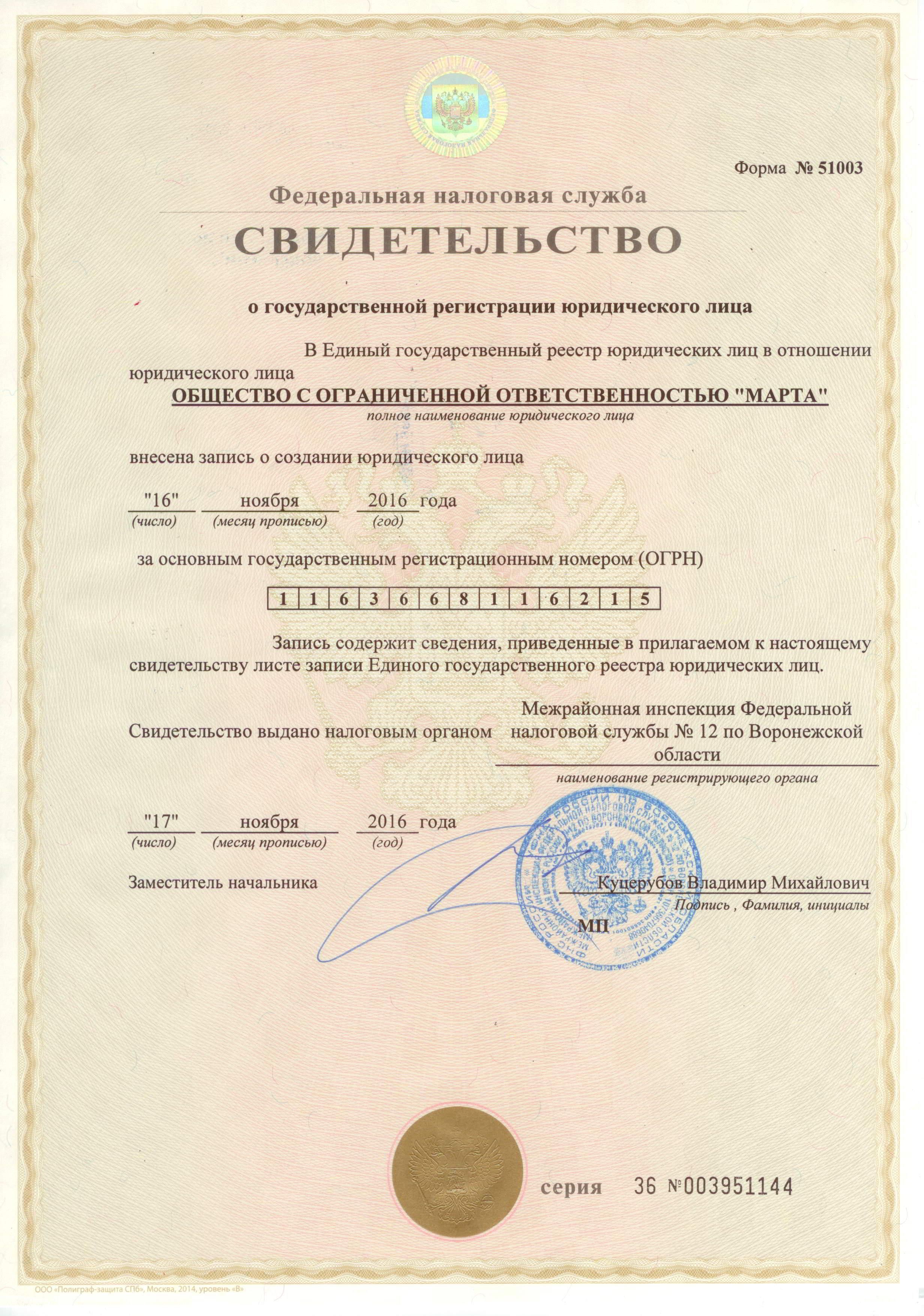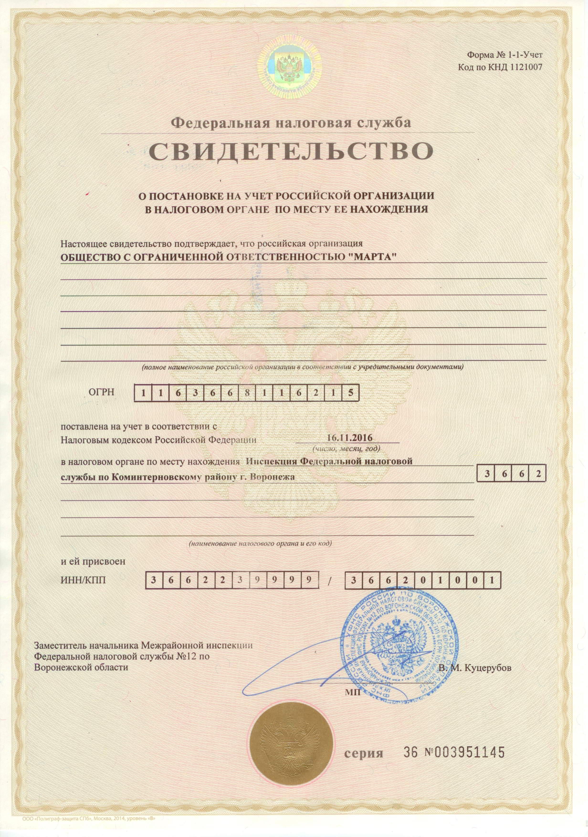 ООО "МАРТА" ИНН 3662239999 / КПП 366201001