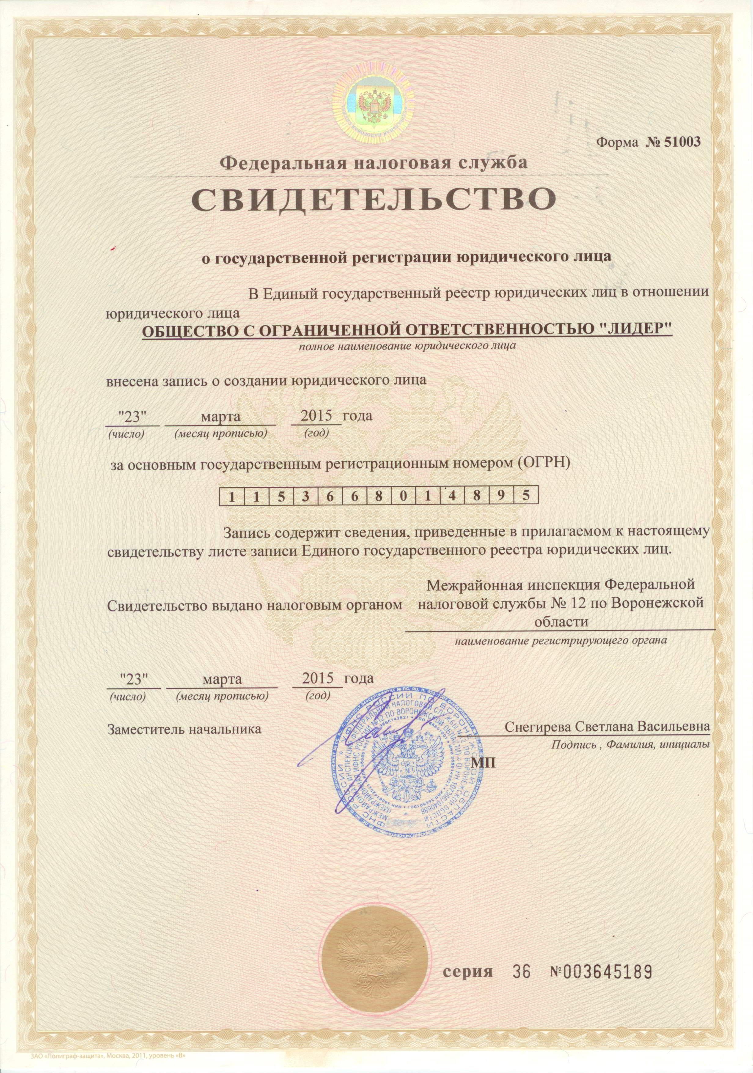 ООО "Лидер" ИНН 3662994014 / КПП 366201001